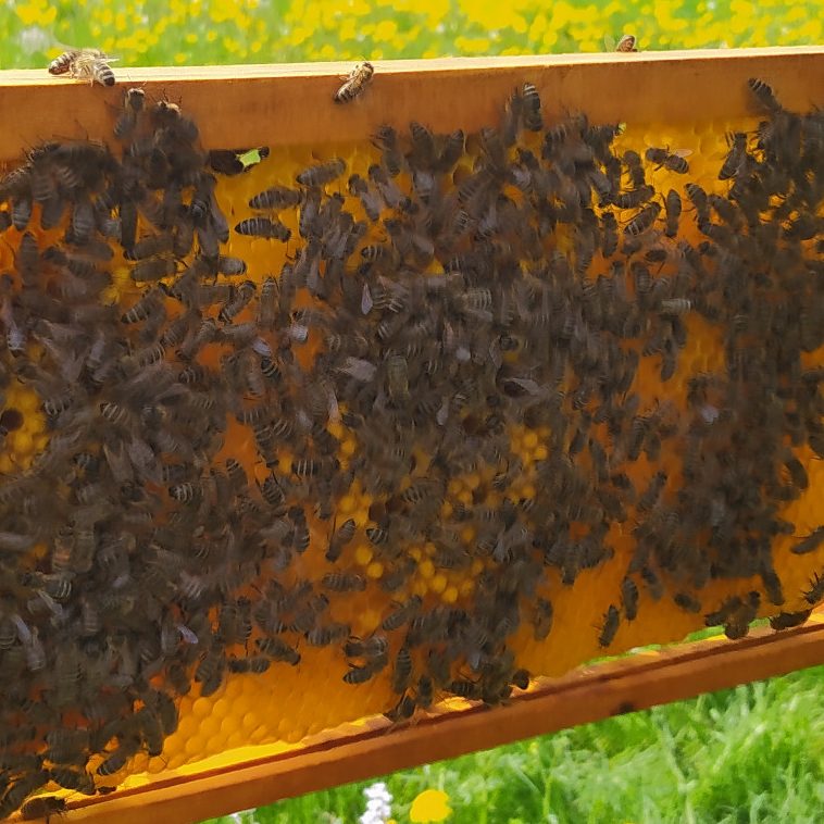 Ich pflege meine Bienenvölker mit Respekt vor dem Bien und achte selbstverständlich auf schonende Naturprozesse. Natürlich kommt das Wachs für die Mittelwände ausschließlich aus meinem eigenen, geschlossenen Wachskreislauf.